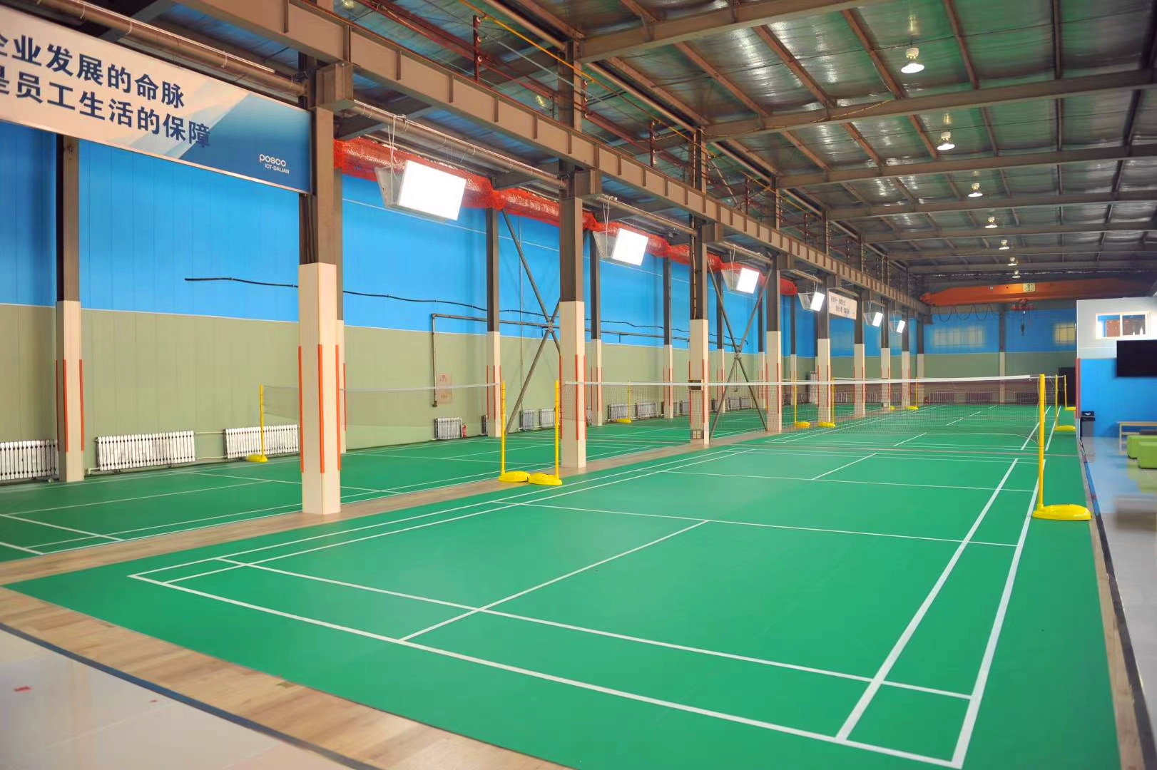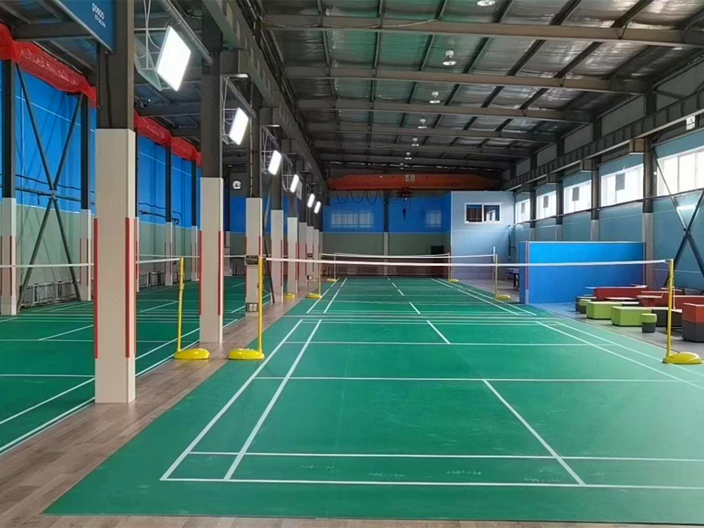 大連海東青羽毛球會(huì)館 品牌:金泰 時(shí)間:2020年9月 材質(zhì):沙地紋運(yùn)動(dòng)地膠 厚度:4.5mm 規(guī)格:1.8*15M 顏色:綠色