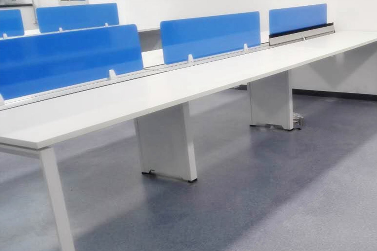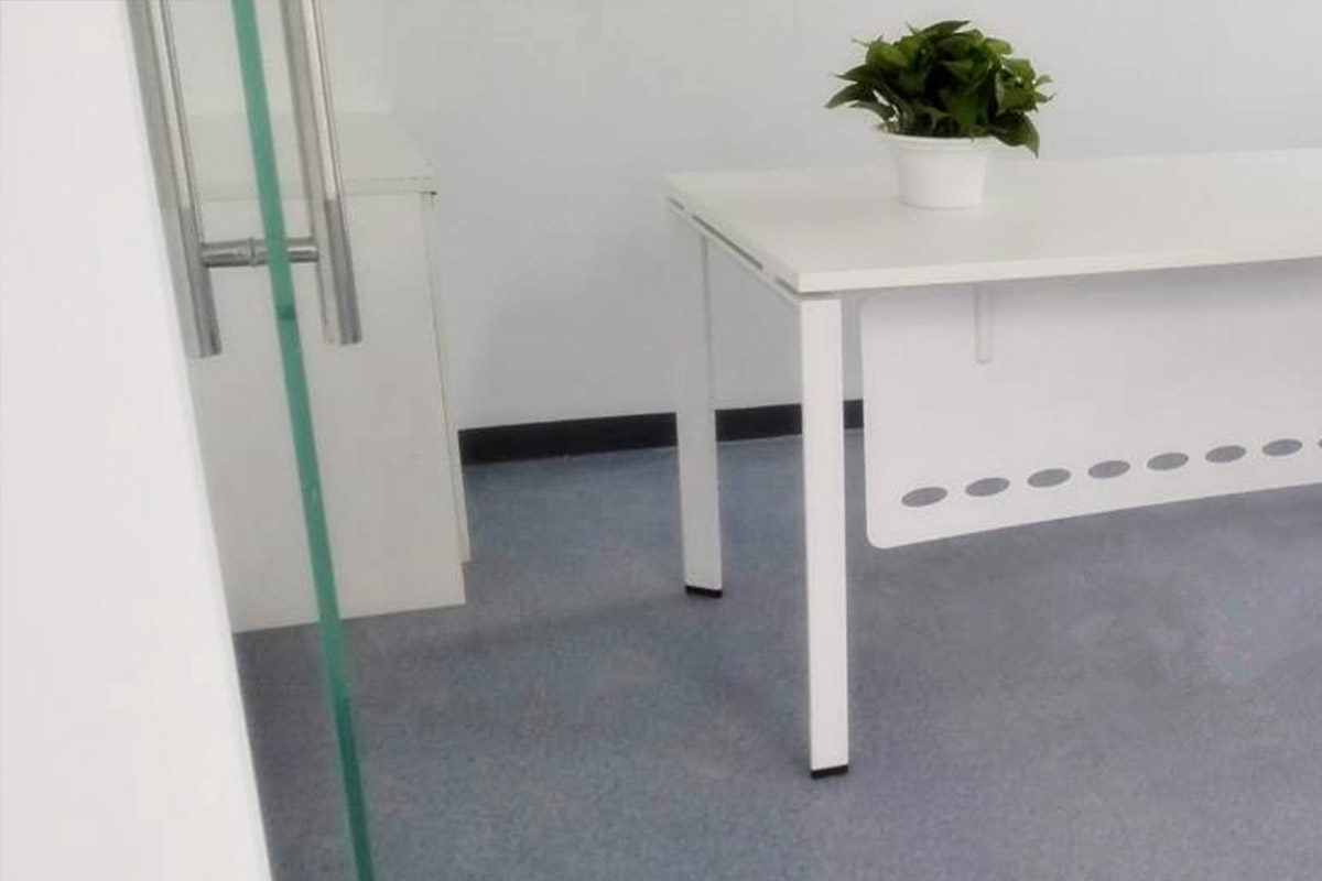 2016年8月上海某科技公司正式入住該產(chǎn)業(yè)園,在裝修時(shí),該公司負(fù)責(zé)人經(jīng)過(guò)多家考察和對(duì)比,選擇了金泰商用塑膠地板作為其辦公室地板,顏色為淡藍(lán)色,厚度為2.6mm,耐磨層選用厚的0.55mm。經(jīng)過(guò)工人師傅們的辛苦努力,幫客戶處理了地面開(kāi)裂嚴(yán)重,老地面環(huán)氧起殼等各種問(wèn)題,重新做了地面找平,鋪完后,客戶和設(shè)計(jì)師對(duì)我們的服務(wù)贊不絕口,說(shuō)是比設(shè)計(jì)的還好,而且和整體的協(xié)調(diào)?蛻舻诙旖患按氖褂蒙狭,快來(lái)看看實(shí)圖有沒(méi)有心動(dòng)。金色陽(yáng)光服務(wù),美麗品質(zhì)泰山!